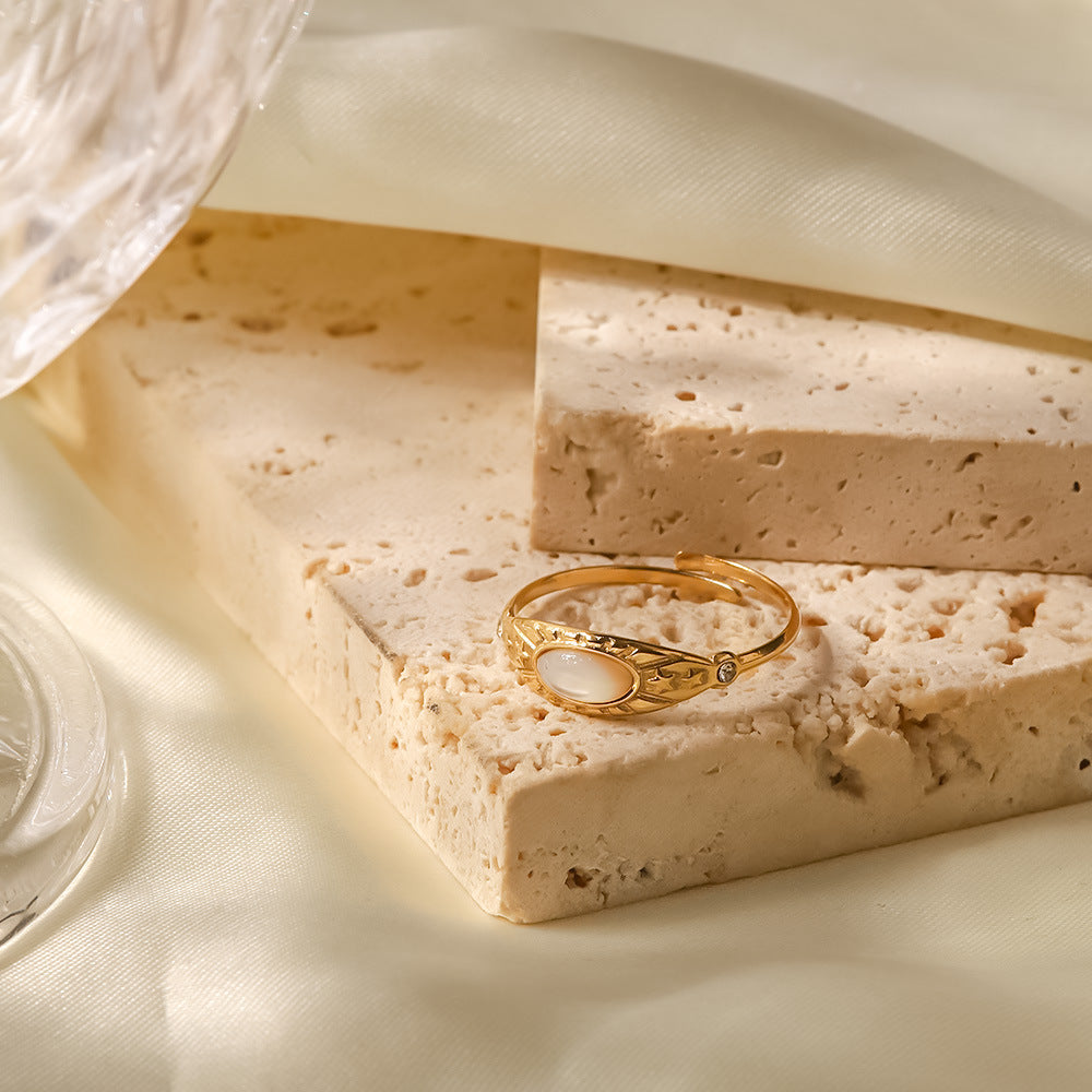 Crafted from stainless steel, this geometric ring features zircon inlays. Its open design allows free size adjustment, fitting most people perfectly.