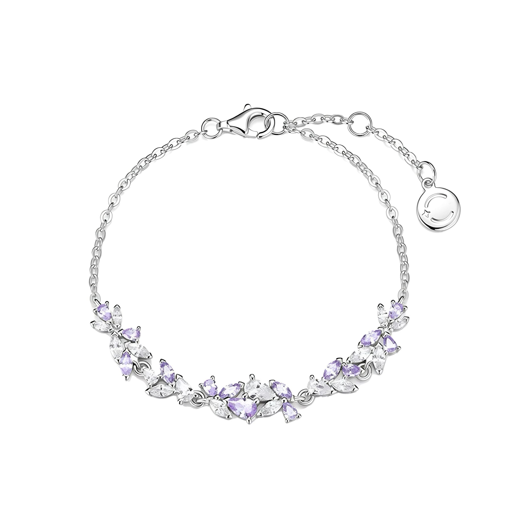 This stunning bracelet is inspired by the delicate beauty of wisteria flowers, featuring shimmering amethyst stones set in intricate silver. Its elegant design captures the essence of nature’s grace, adding a touch of refined artistry to any outfit. Perfect for special occasions or as a timeless accessory.