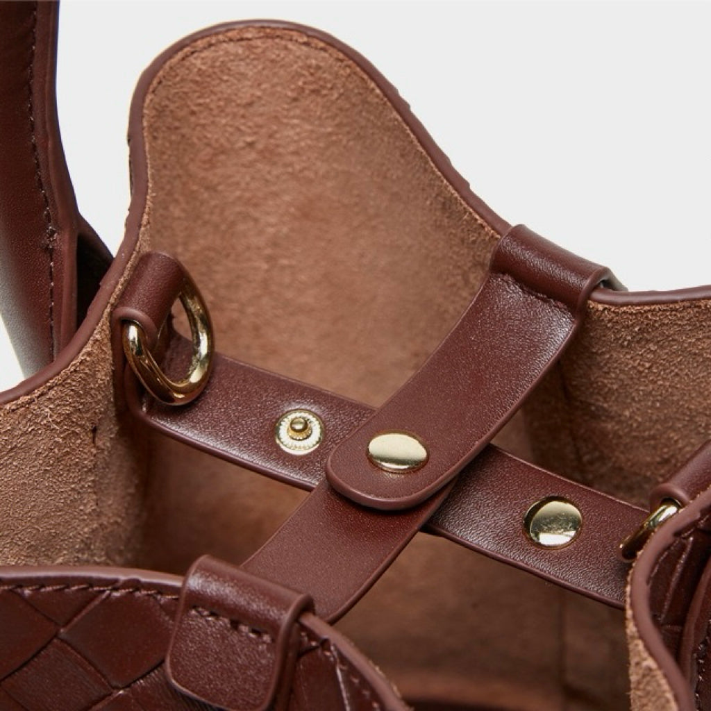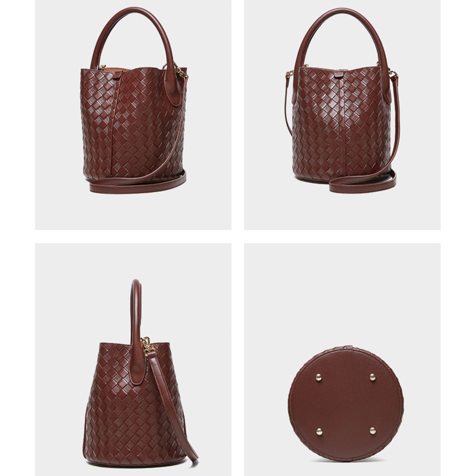 Women’s Luxury Genuine Leather Woven Bucket Crossbody Handbag