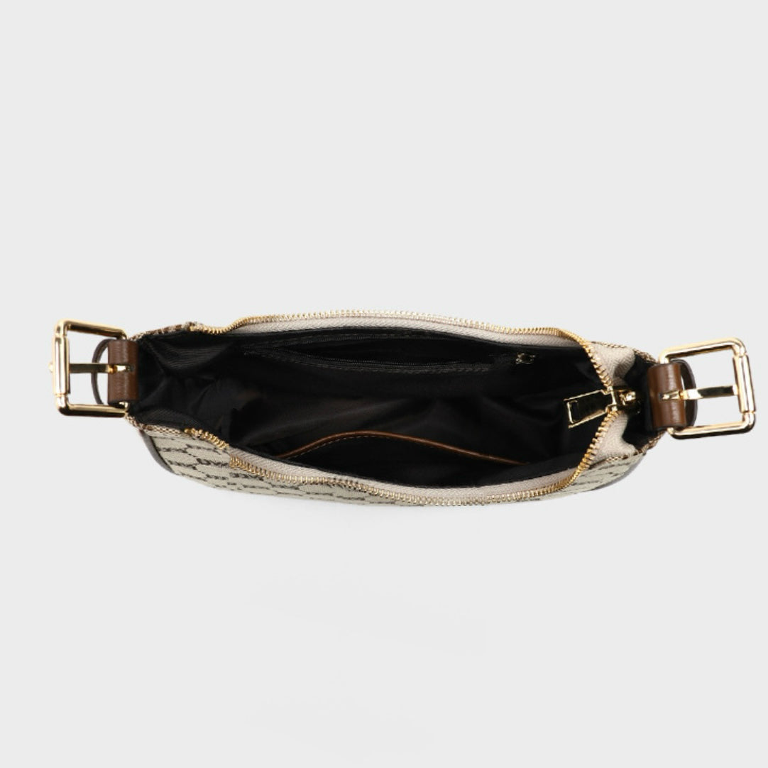This Classic Monogram Canvas Armpit Bag is made of durable fabric, featuring a trendy monogram pattern with letter details that boost its stylish appeal. As a small-sized crescent-shaped bag with a soft texture, it fits perfectly under the arm for on-the-go use. It opens smoothly with a zipper, and the fabric lining inside includes a zippered secret pocket and an ID pocket—keeping small essentials like phones, cards, and IDs organized. Equipped with a single shoulder strap, it’s lightweight and flexible, making it an ideal accessory for daily outings or casual occasions.
