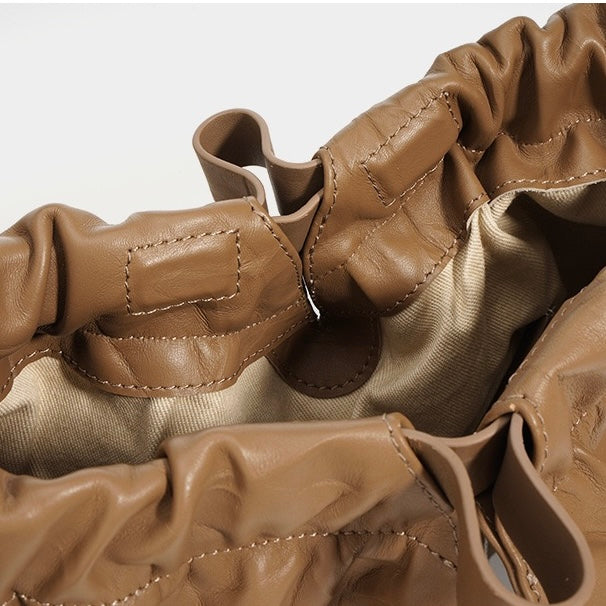 Women’s Genuine Leather Lazy Style Drawstring Crossbody Bag