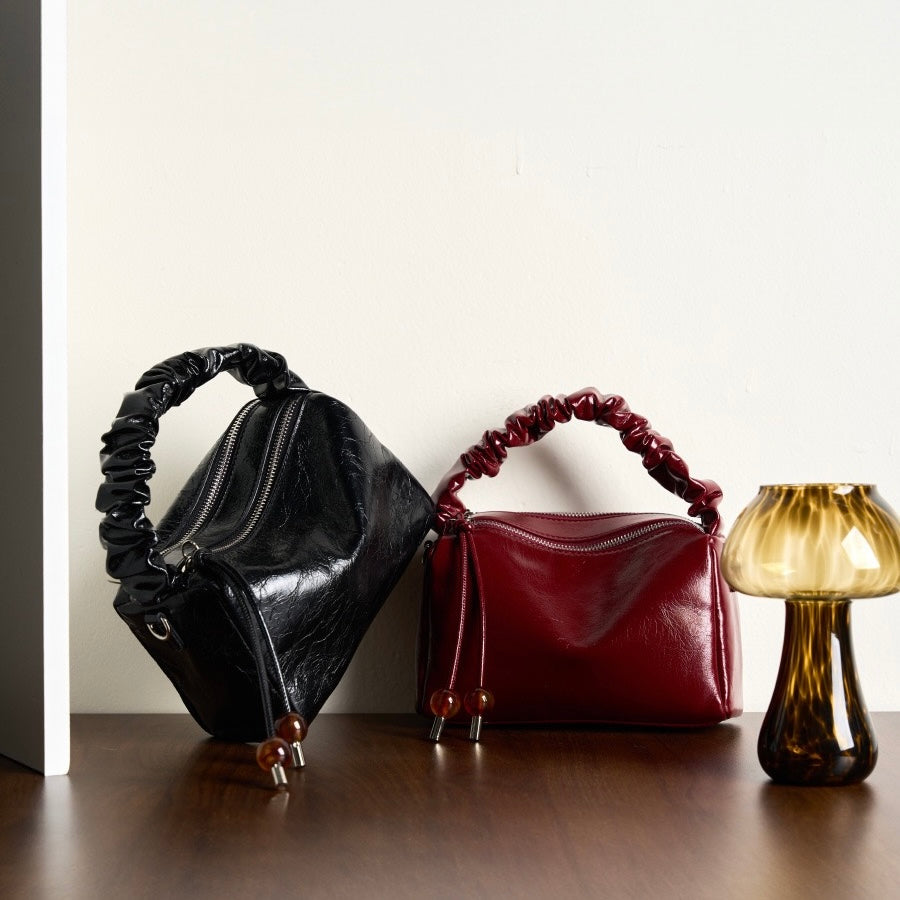 Elevate your daily style with our Genuine Leather Beaded Bento Box Bag. Crafted from top - grain cowhide, this medium - sized pillow tote features eye - catching beaded details and charming pleats. Its cylindrical shape, secured by a zipper, is both trendy and functional. The interior, lined with durable polyester - cotton, includes a hidden zipper pocket, a phone slot, and an additional compartment for organized storage. With dual straps, it’s perfect for everyday commuting, offering a blend of fashion and practicality.