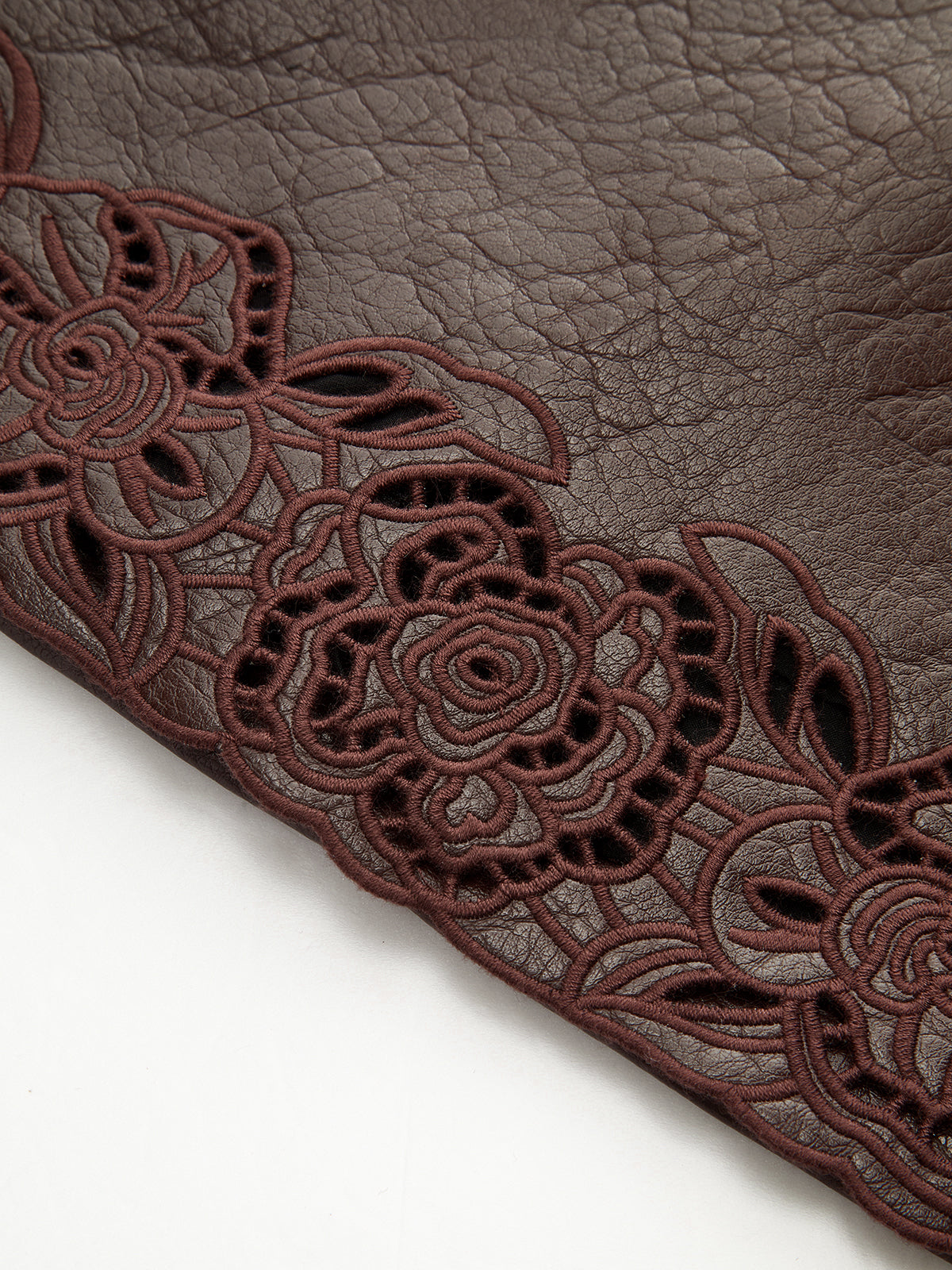 Jacquard Trim PU Leather Mini Skirt with Belt