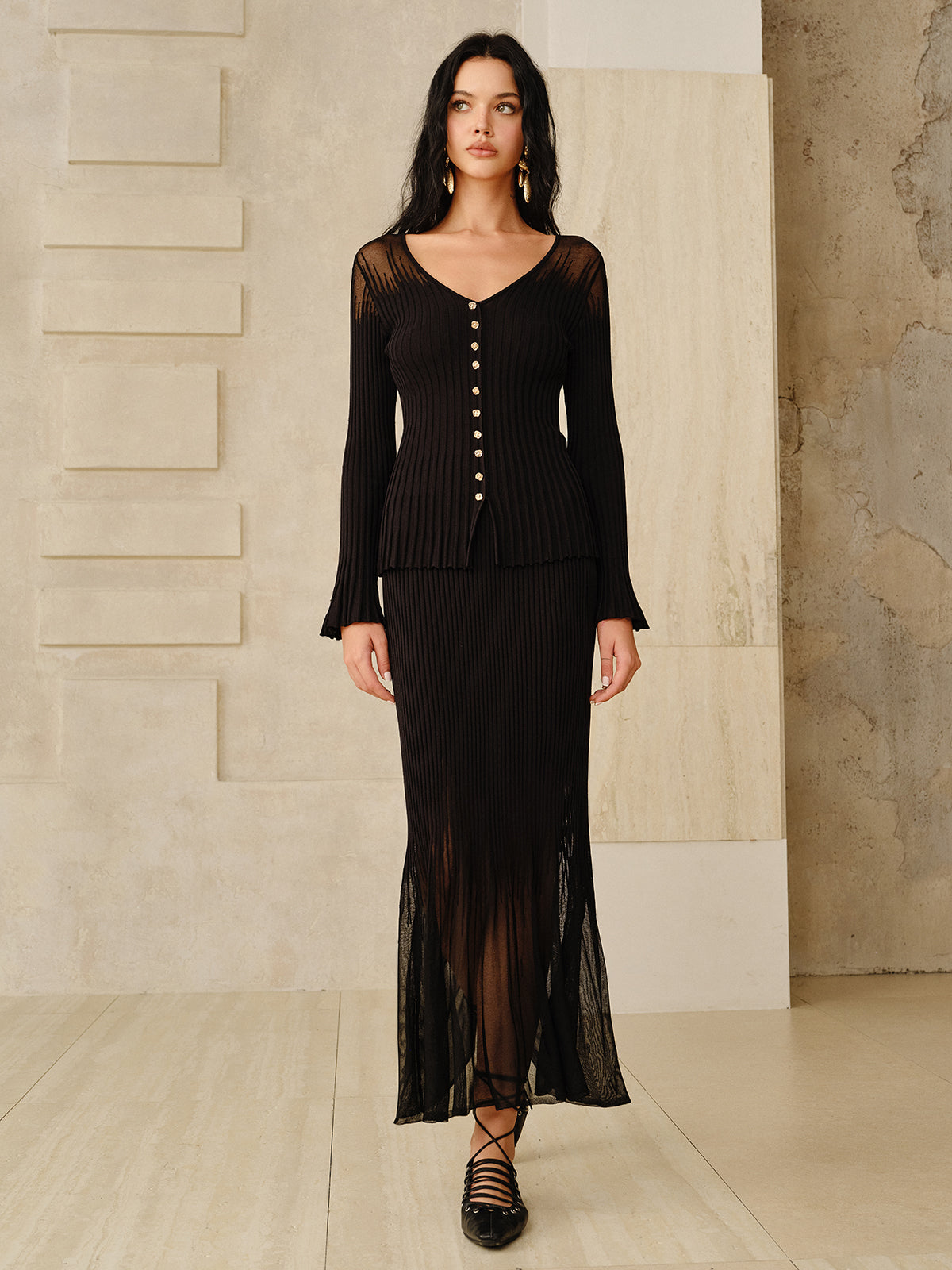 Mesh Hem Ribbed Knit Mermaid Skirt