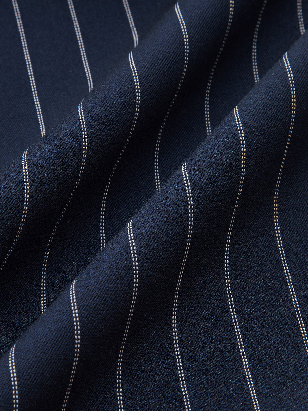 Metal Button Asymmetric Placket Pinstripe Wide-Leg Pants